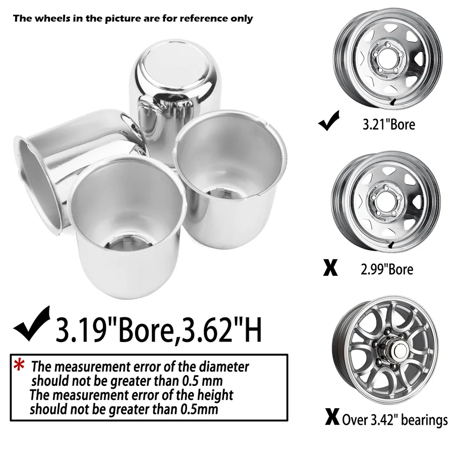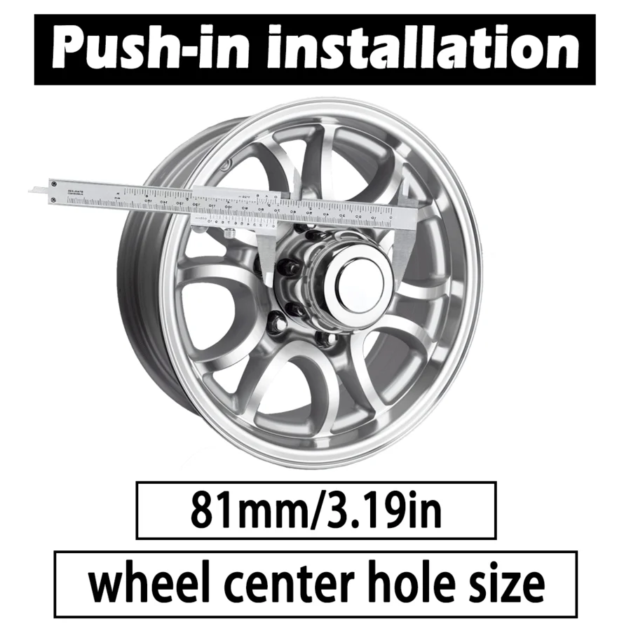- 3.19” push-thru center cap fit for 3.19″ center bore only. It is a replacement rim center cover for a trailer truck SUV or RV wheel. Please ensure the caps are the correct application for your rim. An easy but effective and quick way to upgrade your car’s appearance is with these center caps.
