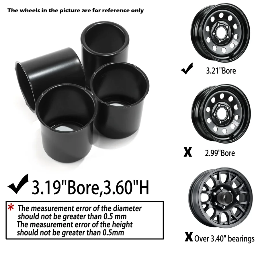 - Center Cap Size: 3.19″ Hub 3.6″ H