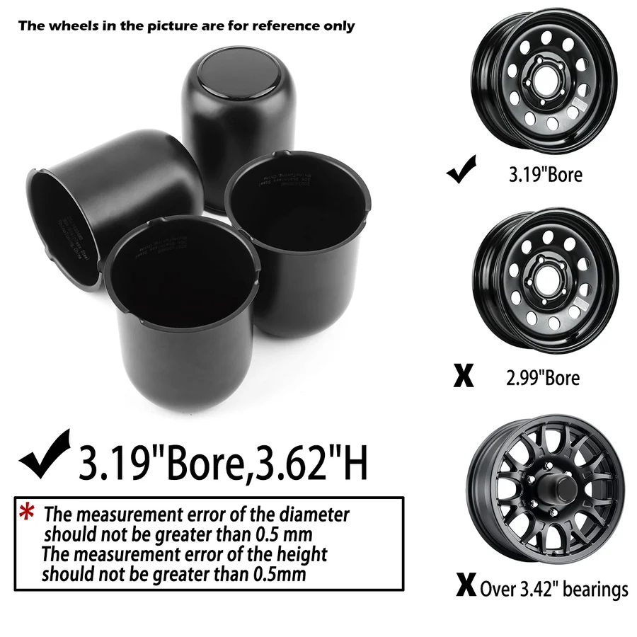 - Center Cap Size: 3.19″ Hub 3.62″ H