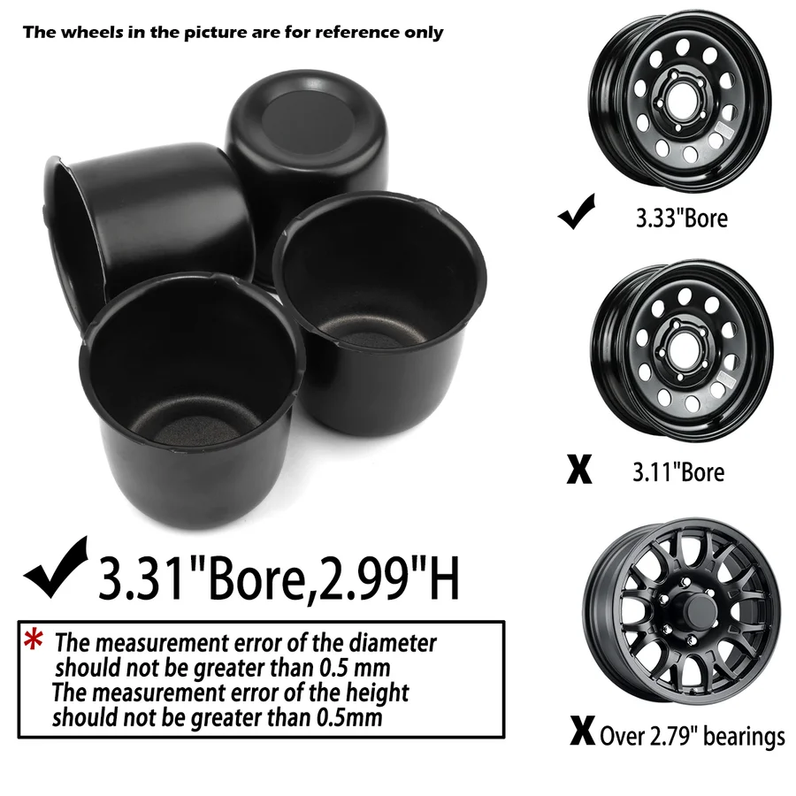 - 3.31” push-thru center cap fit for 3.31″ center bore only. It is a replacement rim center cover for a trailer truck SUV or RV wheel. Please ensure the caps are the correct application for your rim. An easy but effective and quick way to upgrade your car’s appearance is with these car rim center caps.