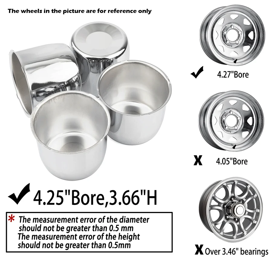 - Center Cap Size: 4.25″ Hub 3.66″ H