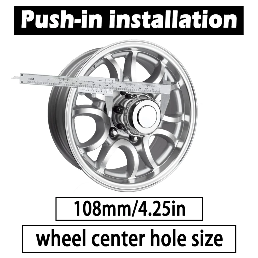 - 4.25” push-thru center cap fit for 4.25″ center bore only. It is a replacement rim center cover for a trailer truck SUV or RV wheel. Please ensure the caps are the correct application for your rim. An easy but effective and quick way to upgrade your car’s appearance is with these trailer center caps.
