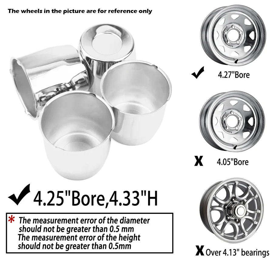 - Center Cap Size: 4.25″ Hub 4.33″ H