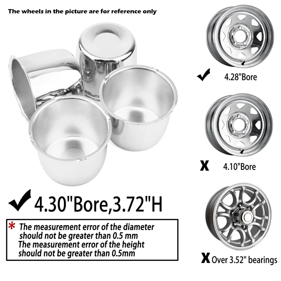 - Center Cap Size: 4.25″ Hub 3.72″ H