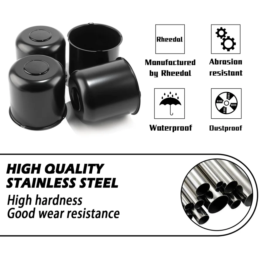 The Rheedal 3.19" Black Trailer Wheel Center Caps are open-ended style 304 stainless steel center caps. They effectively protect your wheel hubs and are easy to install and remove. We also have customized service for you. Please contact us if…