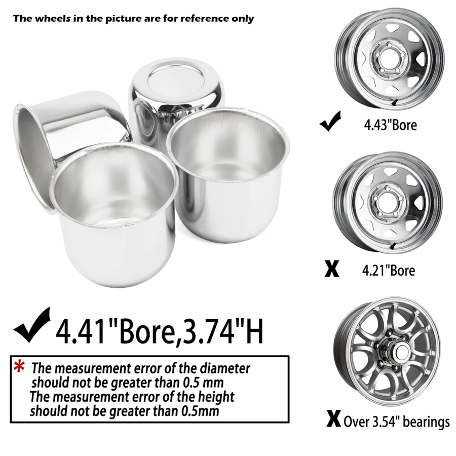 - 4.41” push-thru center cap fit for 4.41″ center bore only. It is a replacement rim center cover for a trailer truck SUV or RV wheel. Please ensure the caps are the correct application for your rim. An easy but effective and quick way to upgrade your car’s appearance is with these hubcaps.