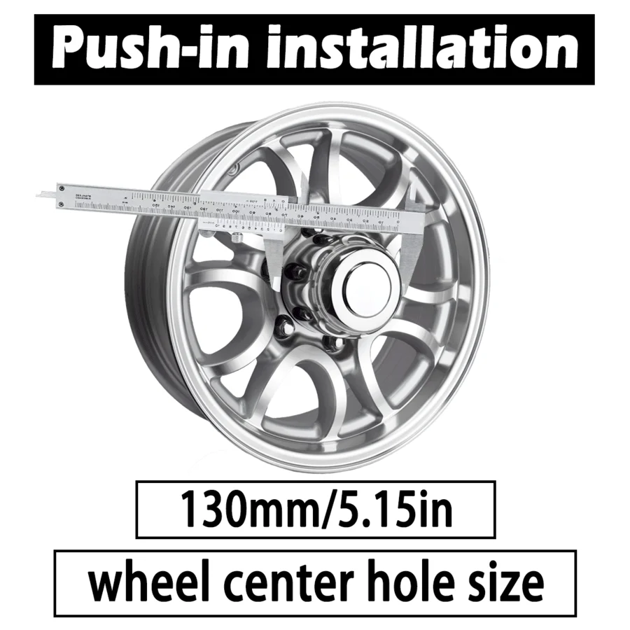 - 5.15” push-thru center cap fit for 5.15″ center bore only. It is a replacement rim center hub cover for a trailer truck SUV or RV wheel. Please ensure the hub caps are the correct application for your rim. An easy but effective and quick way to upgrade your car’s appearance is with these hubcaps.