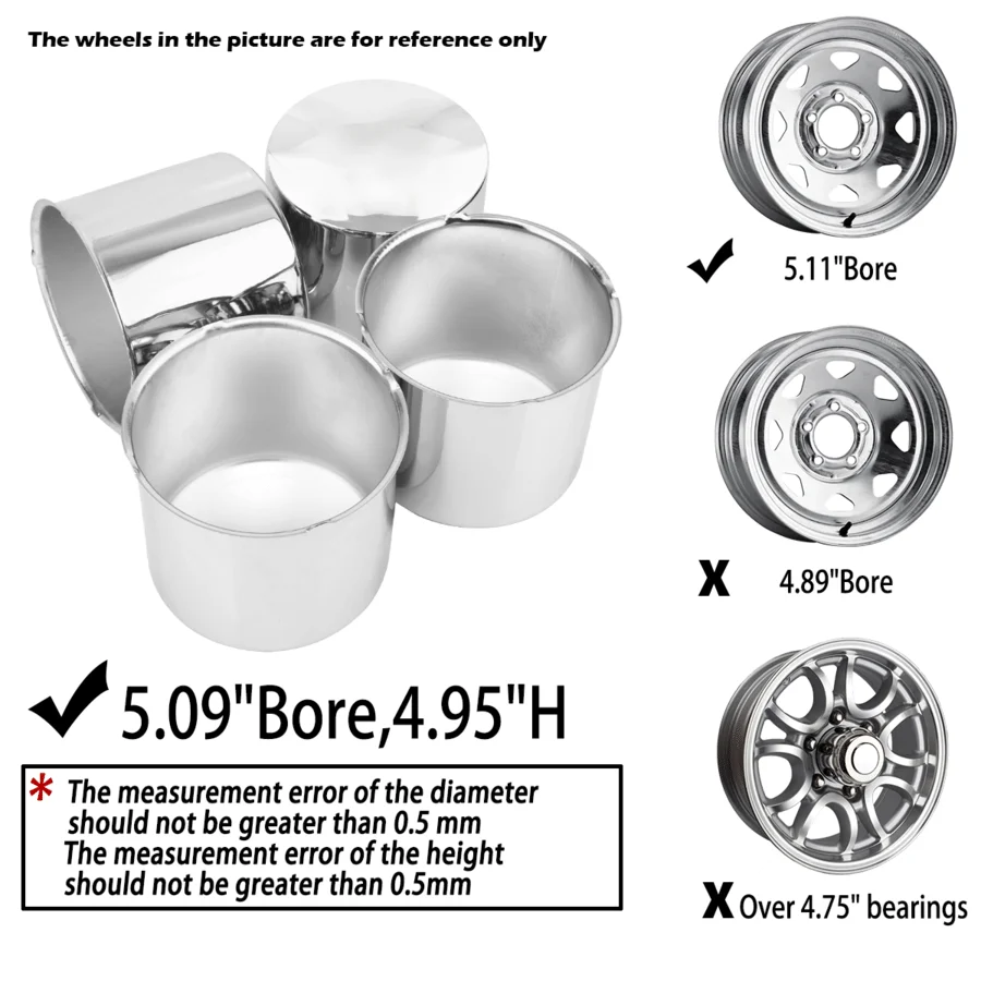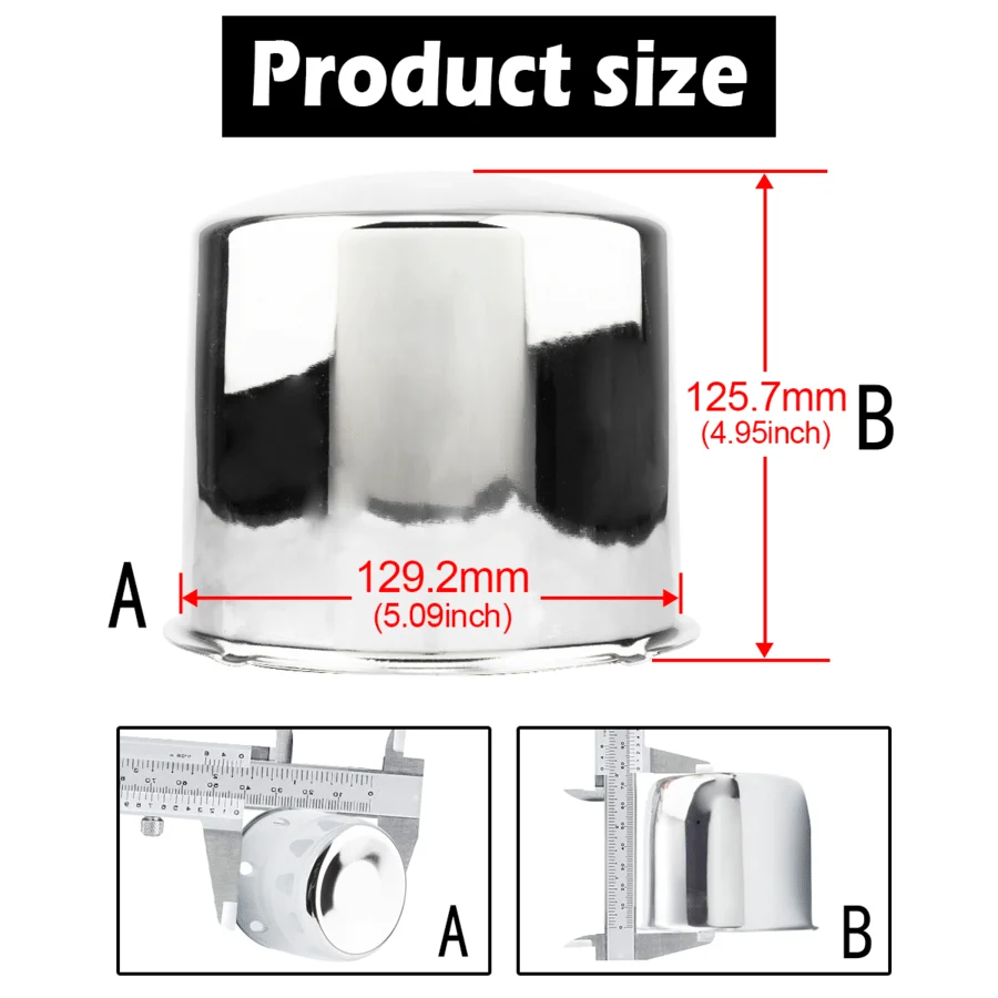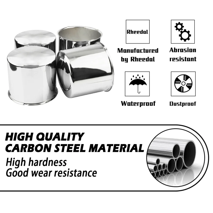 These Push Through Center Caps fit for 5.15″ trailer/truck rims center bore,4.95″ tall wheel hubs. The carbon steel material center caps provide strong defense to your wheel hubs, which prevent sand and rust from entering into your wheel hub. Also, you can customize your own center caps.
