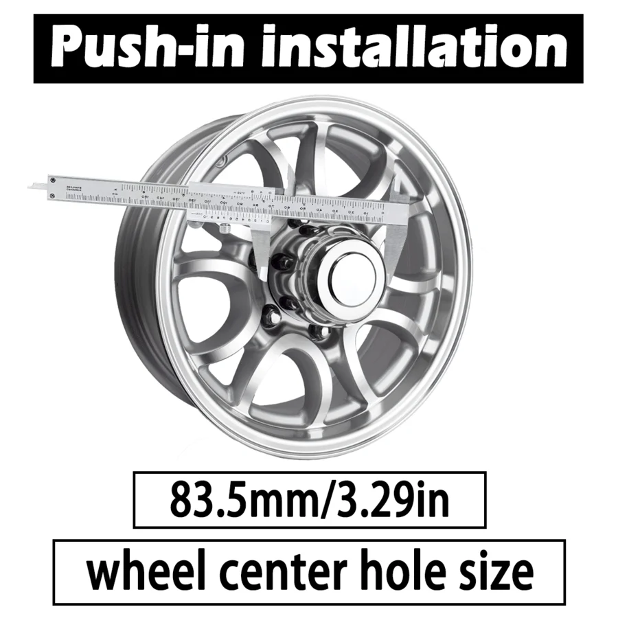 - 3.27” push-thru center cap fit for 3.27″ center bore only. It is a replacement rim center cover for a trailer truck SUV or RV wheel. Please ensure the caps are the correct application for your rim. An easy but effective and quick way to upgrade your car’s appearance is with these wheel rim center hubcaps.