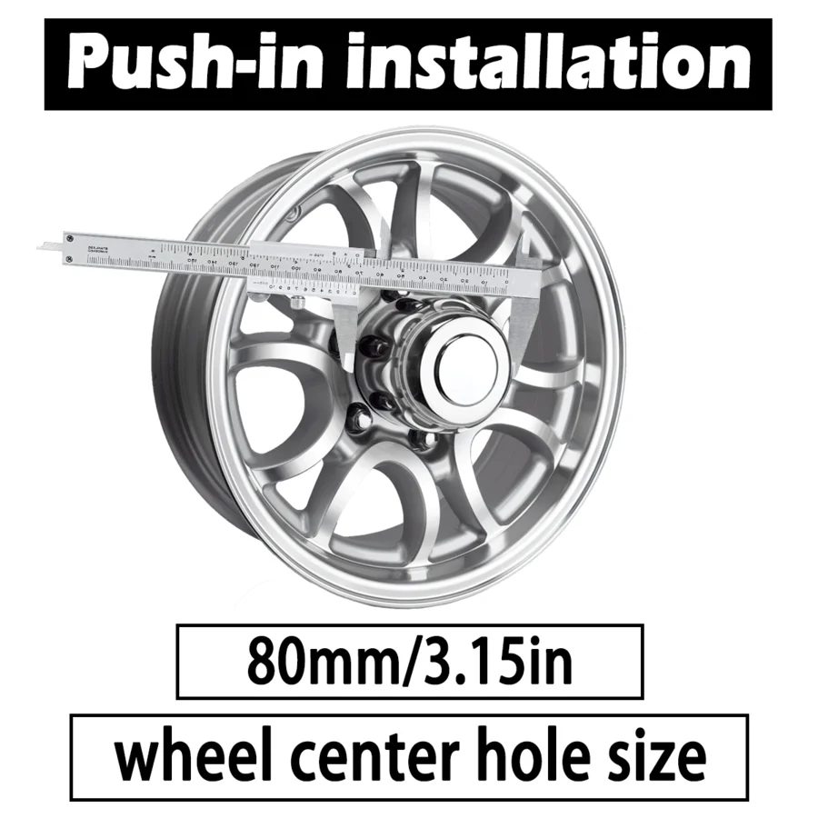 • 3.15” push-thru center cap fit for 3.15″ center bore only. It is a replacement rim center cover for a trailer truck SUV or RV wheel. Please ensure the caps are the correct application for your rim. An easy but effective and quick way to upgrade your car’s appearance is with these center rim covers.
