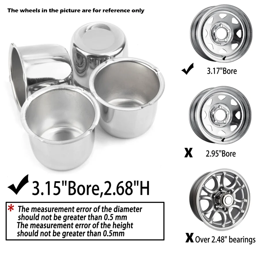 These 8 Lug Center Caps fit for for 5.15"  center bore, 4.31" tall SUV, RV, trailer and truck rims. Chrome carbon steel center caps are the best choice for you wheel hubs. They are well anti-corrosion and wear-resistant. Also support…