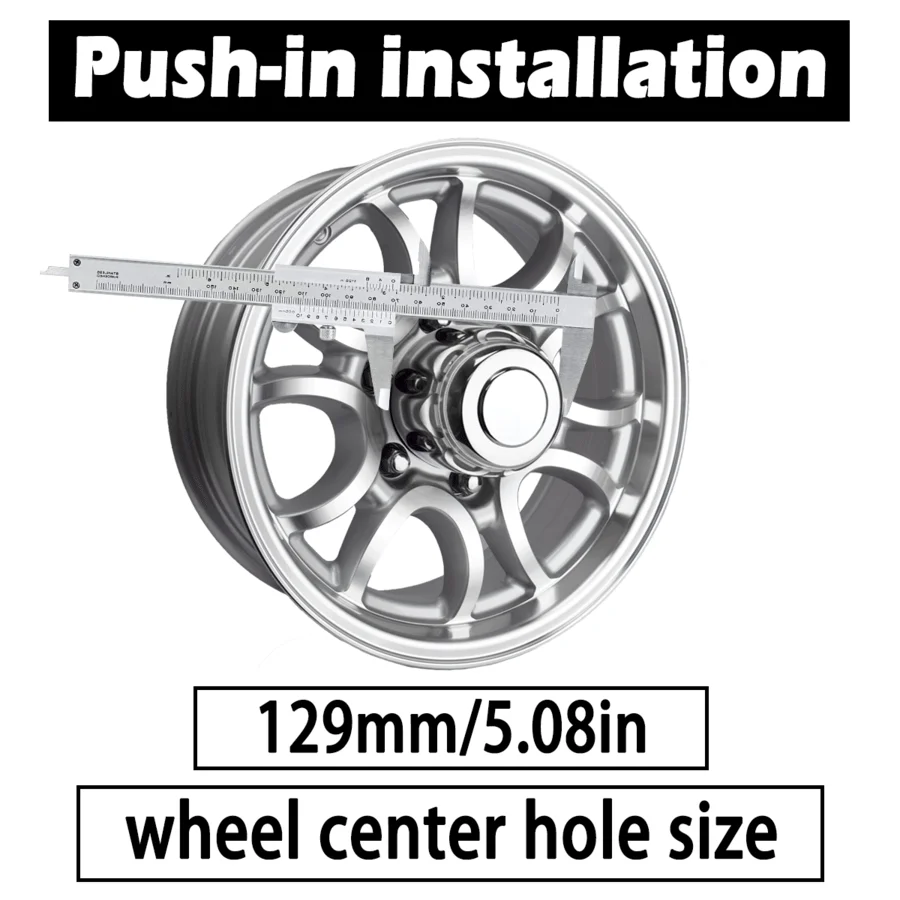 - 5.15” push-thru center cap fit for 5.15″ center bore only. It is a replacement rim center cover for a trailer truck SUV or RV wheel. Please ensure the caps are the correct application for your rim. An easy but effective and quick way to upgrade your car’s appearance is with these rim center covers.